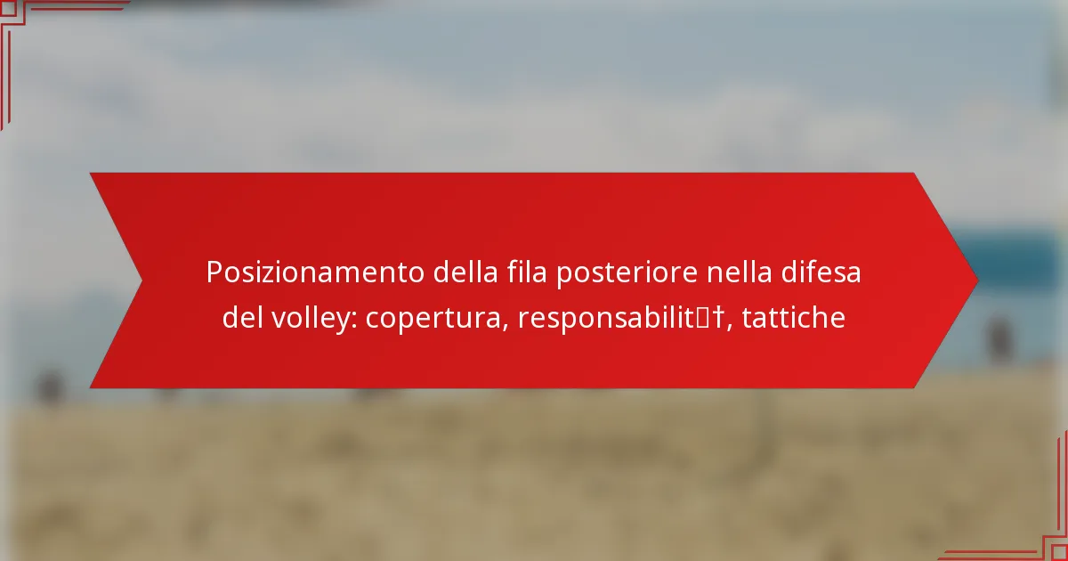 I giocatori della retroguardia nella difesa del volley svolgono un ruolo fondamentale nel mantenere una solida struttura difensiva ricevendo i servizi e coprendo gli attacchi. Il loro posizionamento è essenziale per una copertura efficace del campo, permettendo loro di rispondere rapidamente alle giocate degli avversari. Dominando gli approcci tattici e promuovendo la comunicazione, i giocatori della retroguardia possono migliorare significativamente le prestazioni complessive della loro squadra.