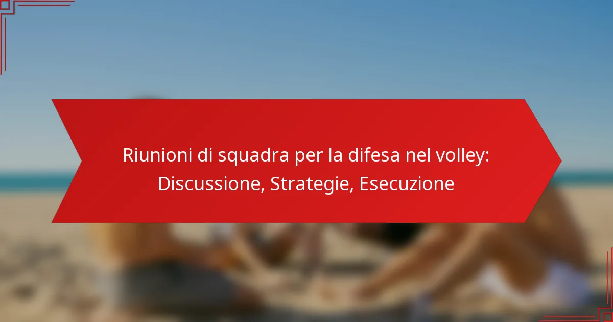 Le riunioni di squadra per la difesa nel volley sono essenziali per migliorare la comunicazione e allineare le strategie tra i giocatori. Questi incontri offrono una piattaforma per discutere tattiche, condividere intuizioni e sviluppare un approccio coeso al gioco difensivo, migliorando infine le prestazioni della squadra. Concentrandosi su agende strutturate e partecipazione attiva, le squadre possono affrontare efficacemente le strategie difensive chiave e promuovere un miglioramento continuo.